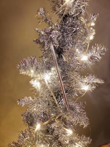 I discovered a lovely glittery faery tree at Walmart for an incredibly reasonable price of just $20. It fits perfectly into my holiday décor, adding an extra magic touch to my already festive home. I’m excited to see how it complements and fits in my office and contributes to the overall enchantment of the season! I now have a faery tree! The little faery perched on top was a gift from my classmate and dear friend, Carol Butts Kline. At the moment, the tree has just one ornament, which is a wand, but I plan to add more ornaments soon. It sits in my office, greeting me every morning when I sit at my keyboard with a cup of hot chocolate and the electric blanket I use for my stiff back!