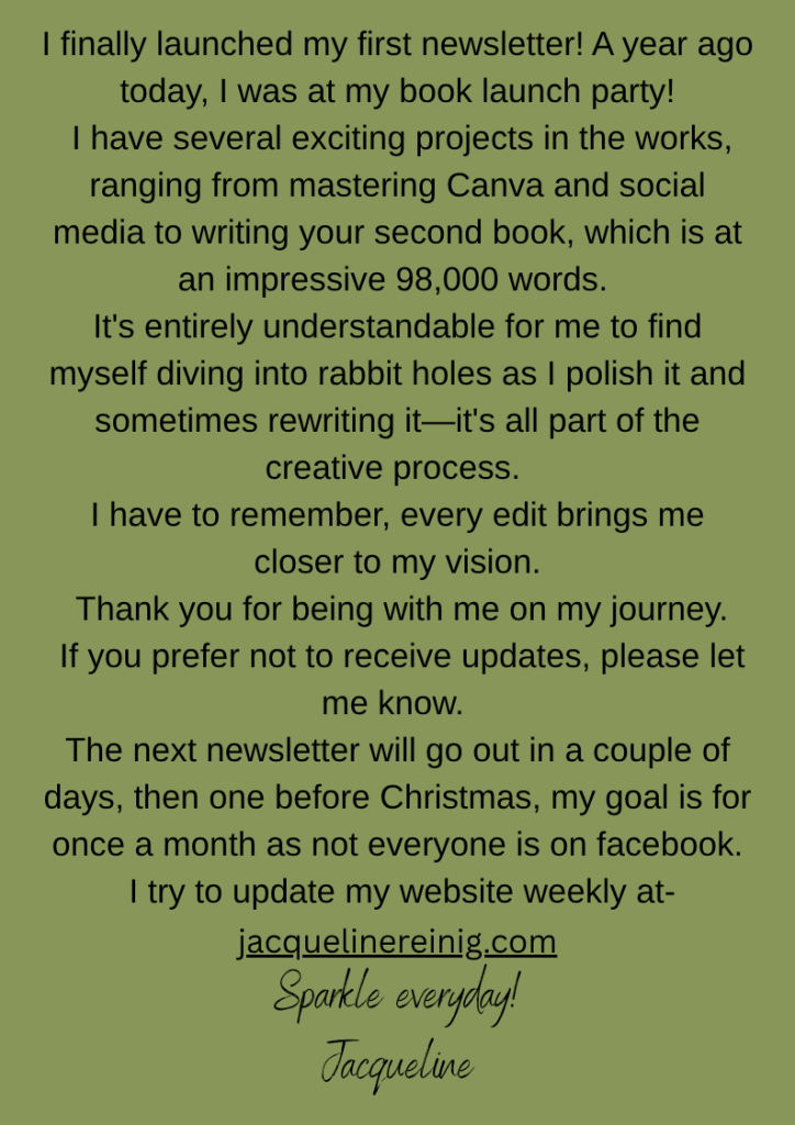 My First Newsletter-Writings from QuillSnap Sign up to receive my newsletter in your email inbox. Let me know what you think! Visitor Tracker: 91 By Jacqueline Reinig Posted: November 18, 2025 Category: BLOG Tags: #bookawards, #Faeryacademyofquillsnap, #newsletter, #usreviewofbooks, Faery Academy of QuillSnap, fairylife From Page to Stage! Feel the Magic! Read for yourself or listen to Maria Nicola Johnson narrate!
